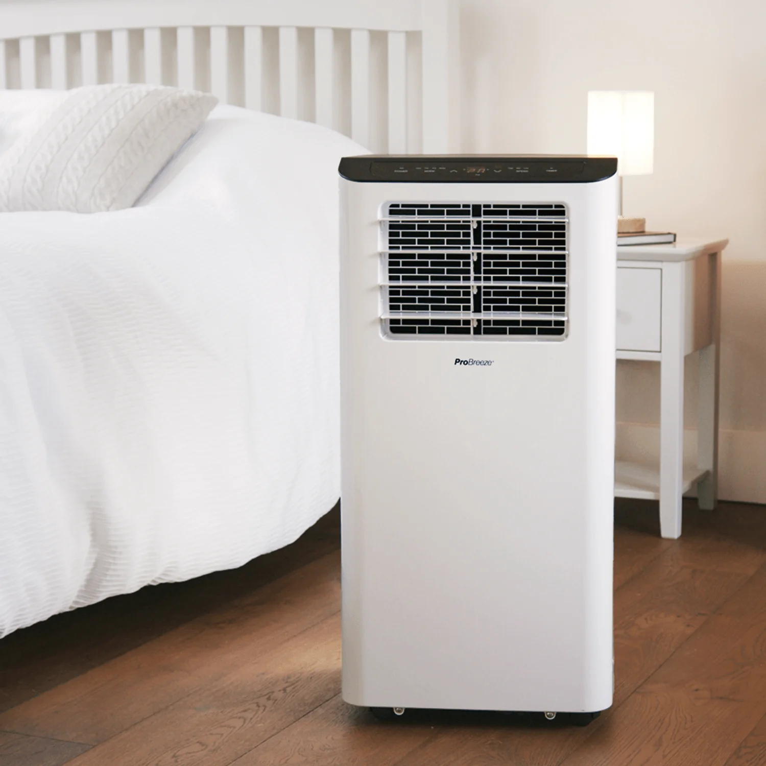 Our 14000 BTU Air Conditioner is the ultimate 3-in-1 cooling solution for your home. Use it as an AC, fan, or dehumidifier - whatever the weather throws at you. Sleep mode gradually slows the fan before switching off, so you can drift off sweat-free. Out and about? Control it remotely with the Pro Breeze smart app and walk into a perfectly chilled home. At home, use voice control, the remote, or the easy-to-read display. The timer enhances your cooling experience by adding that extra level of convenience.